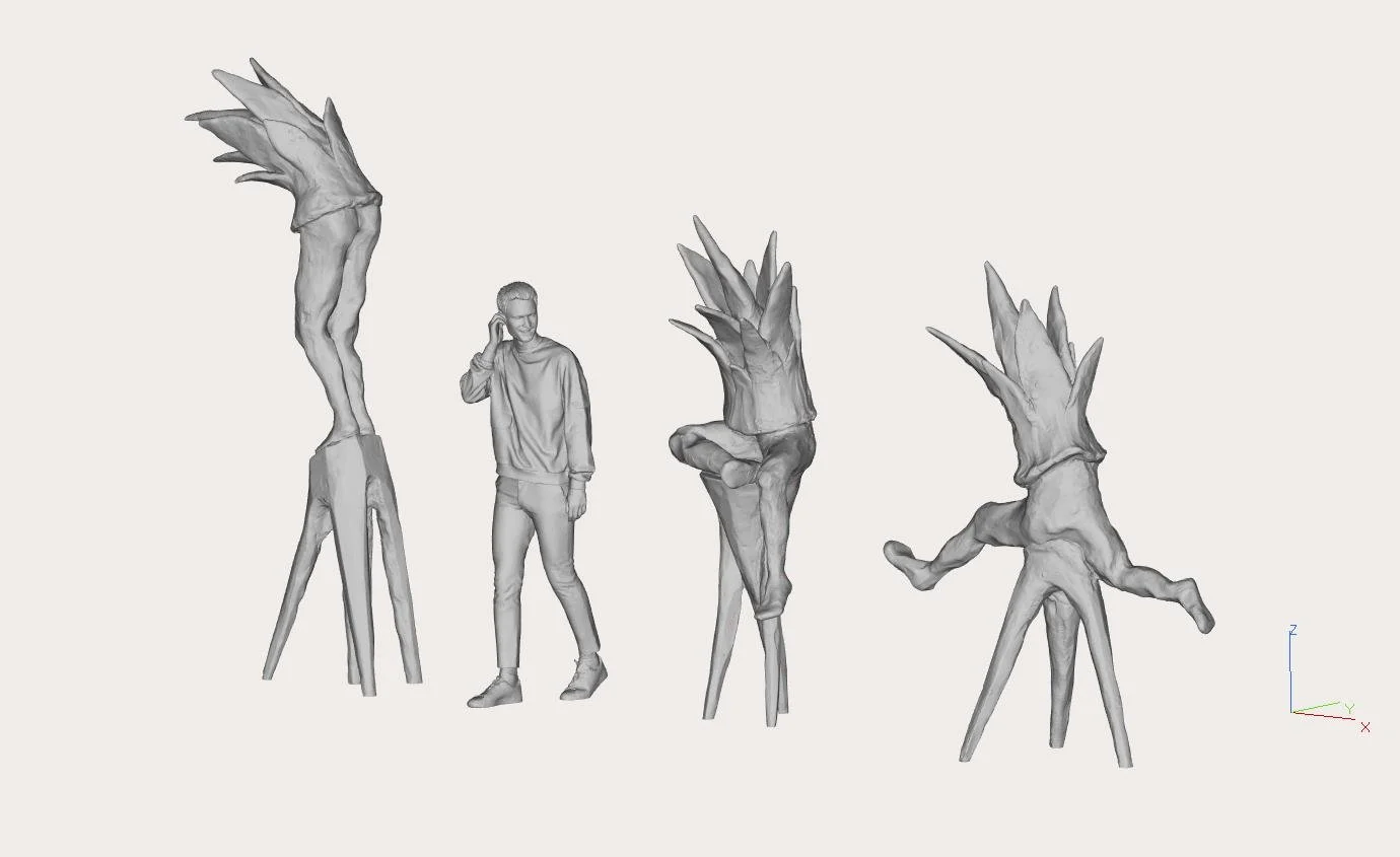 Starting with the maquettes, La Frustracion, El Descanso, La Vigía, El Caminar - Matt 3D scanned the figures with high-resolution photogrammetry. Once the data was processed, the resulting digital 3D models were cleaned and optimised, with subtle edits made to composition and proportion in consultation with the artist.